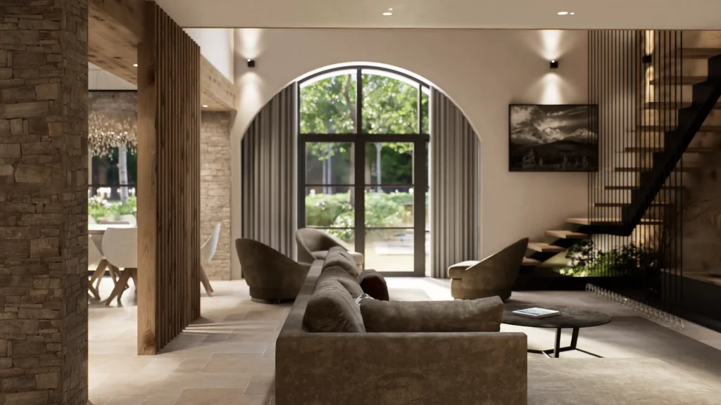 Du relevé de l’existant à la conception architecturale et décorative, chaque étape du projet a été pensée pour sublimer les matériaux d’origine la pierre, le bois massif, les poutres apparentes tout en y intégrant des volumes épurés et une lumière maîtrisée.